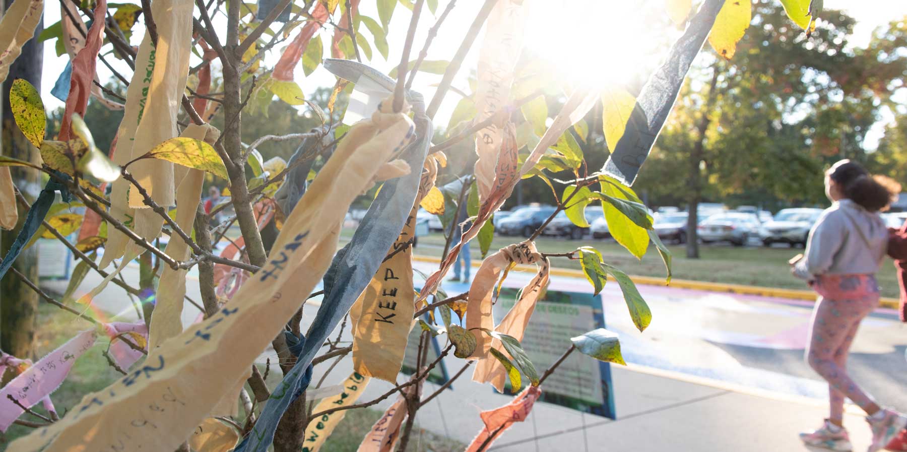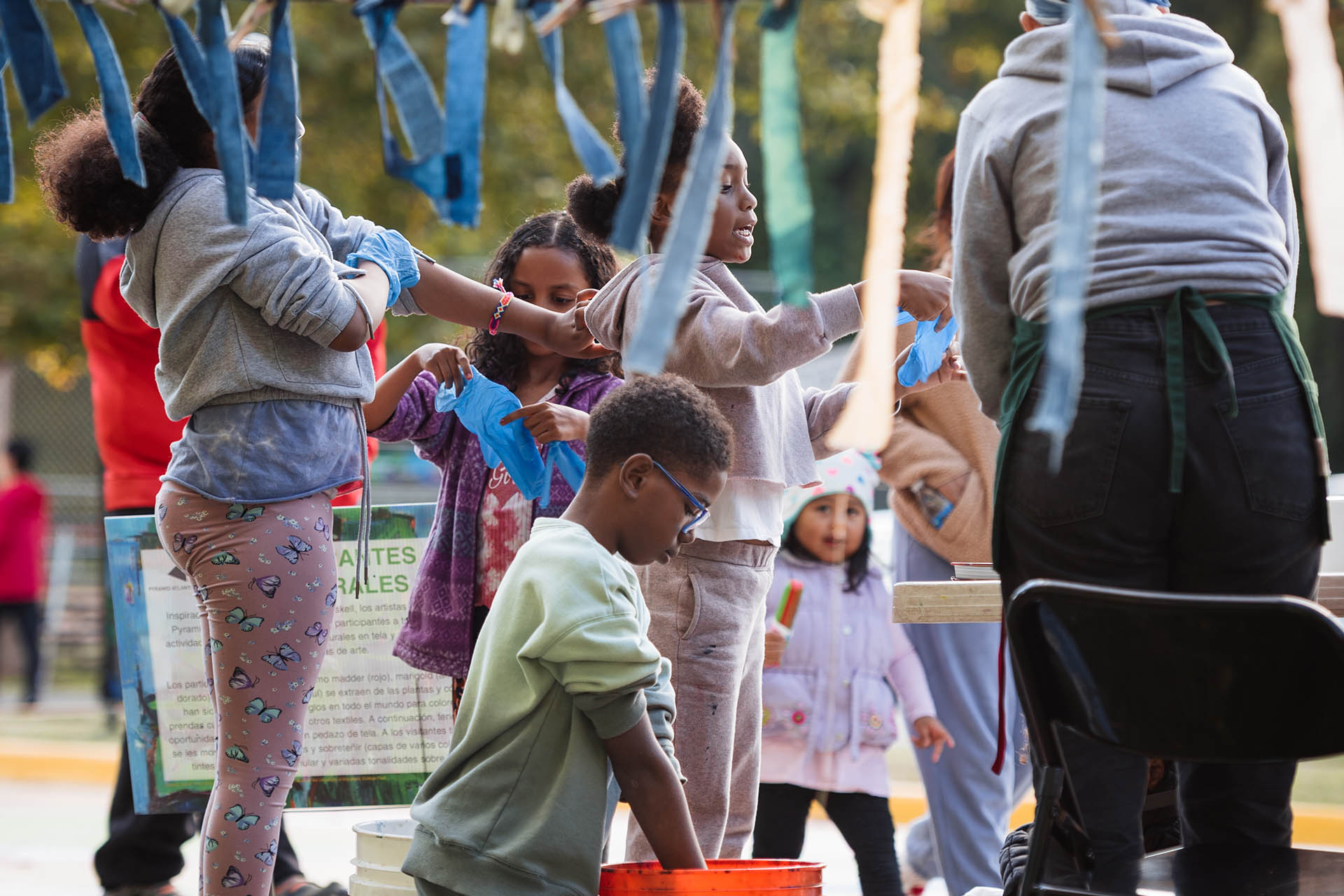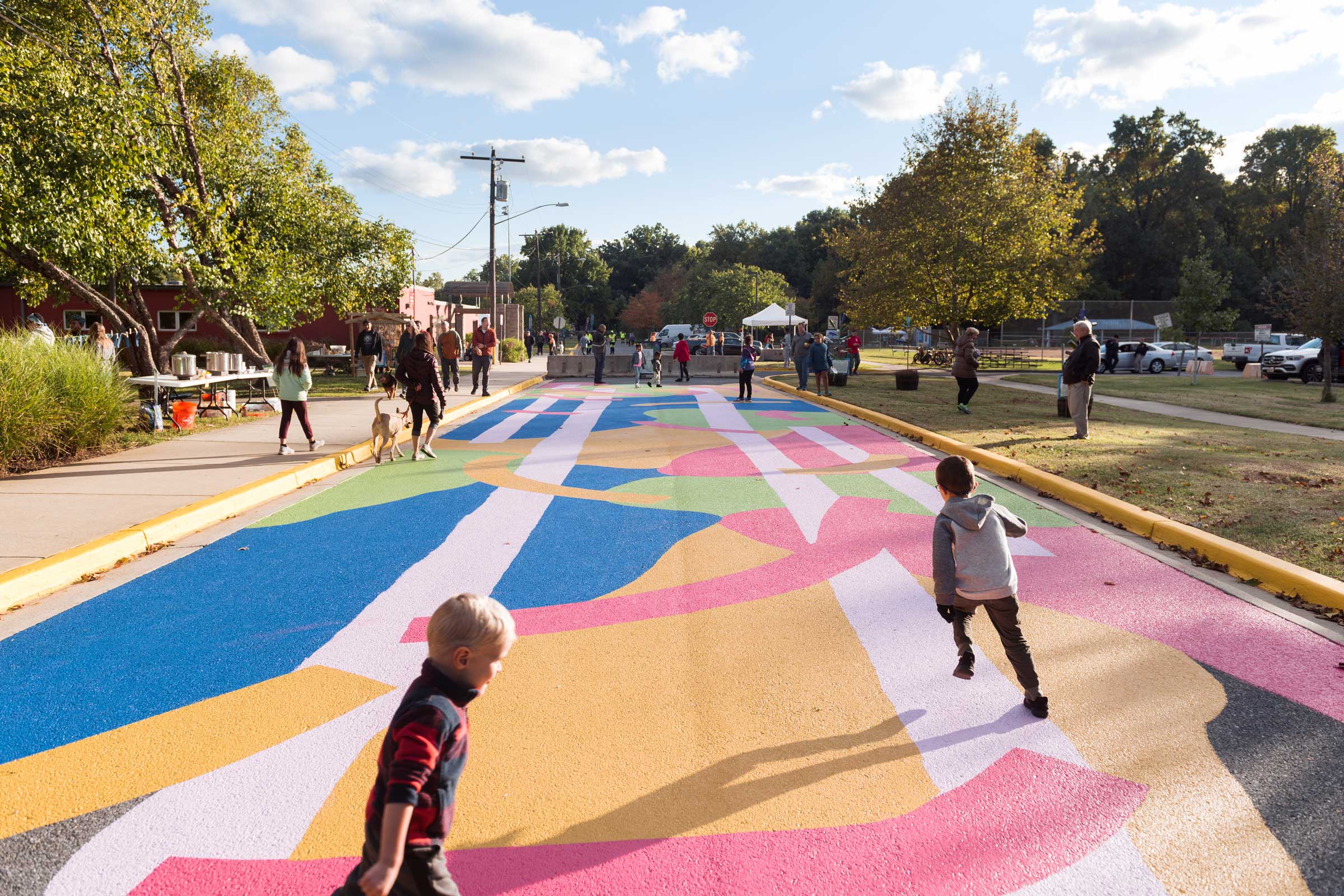 These elements included bottle trees, wish trees, community weaving looms, interpretive signage, and a bold surface mural that creates a vibrant gateway to the park and encourages visitors to slow down and engage—many of which remained on view beyond the dedication. These efforts reflected the park’s guiding themes: discovery and creativity, belonging, contemplation in nature, shared value, and the breaking down of barriers.