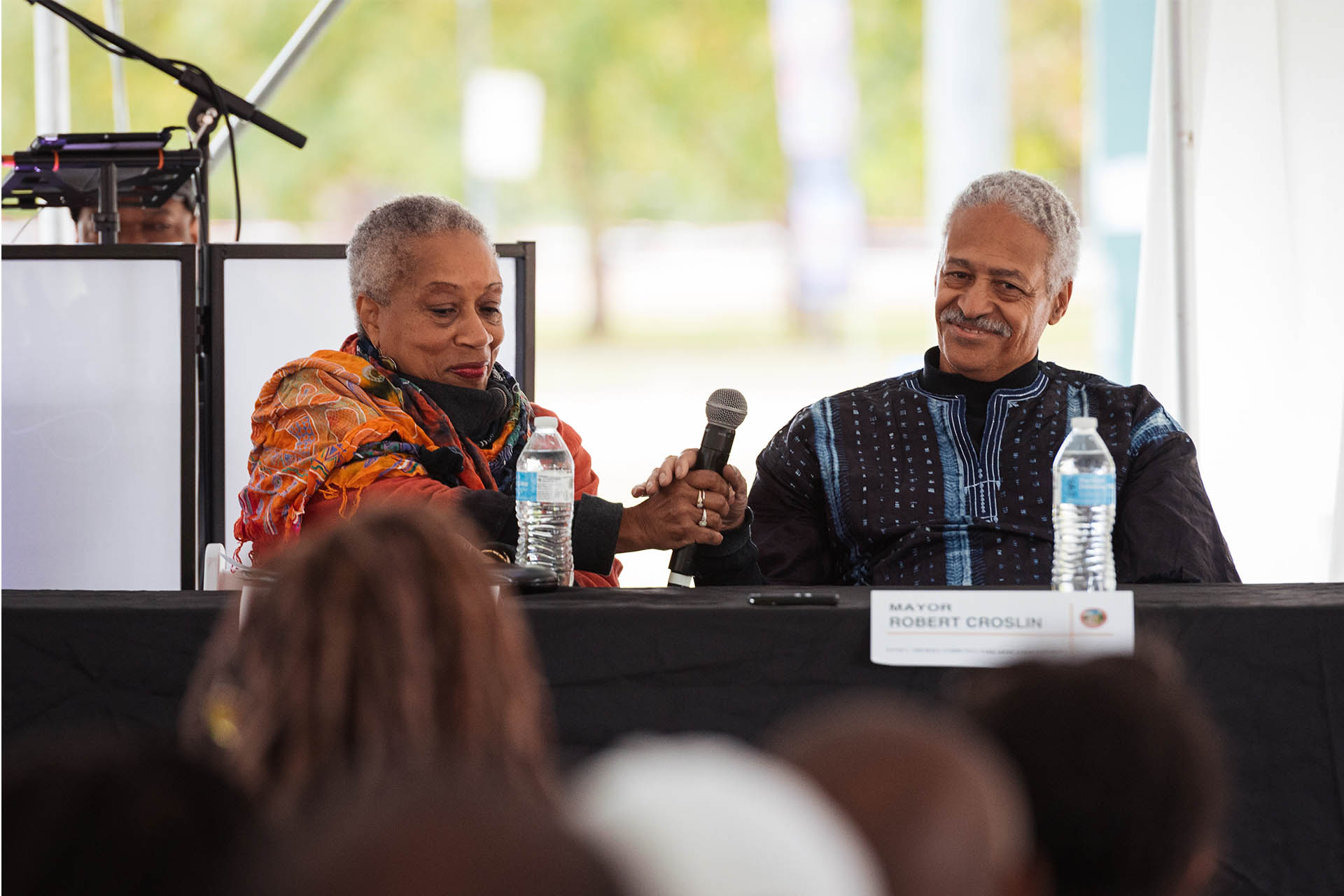Building on the City Council’s 2021 decision to rename the park, and a renewed design process centered on integrating Driskell’s art and legacy, NDC worked closely with City staff, artists, and community partners to help translate shared values into a cohesive public unveiling. The event included a panel discussion on Driskell’s life and legacy, an outdoor art gallery featuring his work, nature walks, community art-making activities, and a ribbon-cutting ceremony.