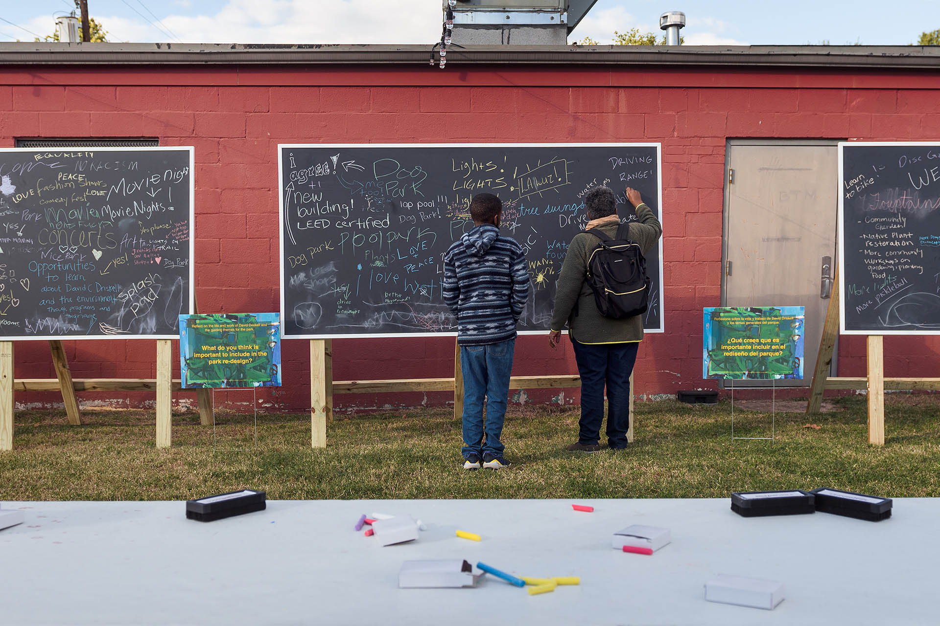 As the team began conceptual design, a group of park champions walked the entire park using a qualitative experience survey. Participants noted how the park made them feel on three spectrums: protection, comfort and enjoyment. These descriptions gave the team a basis for designing the park to meet deeper needs that are not readily expressed during community meetings.