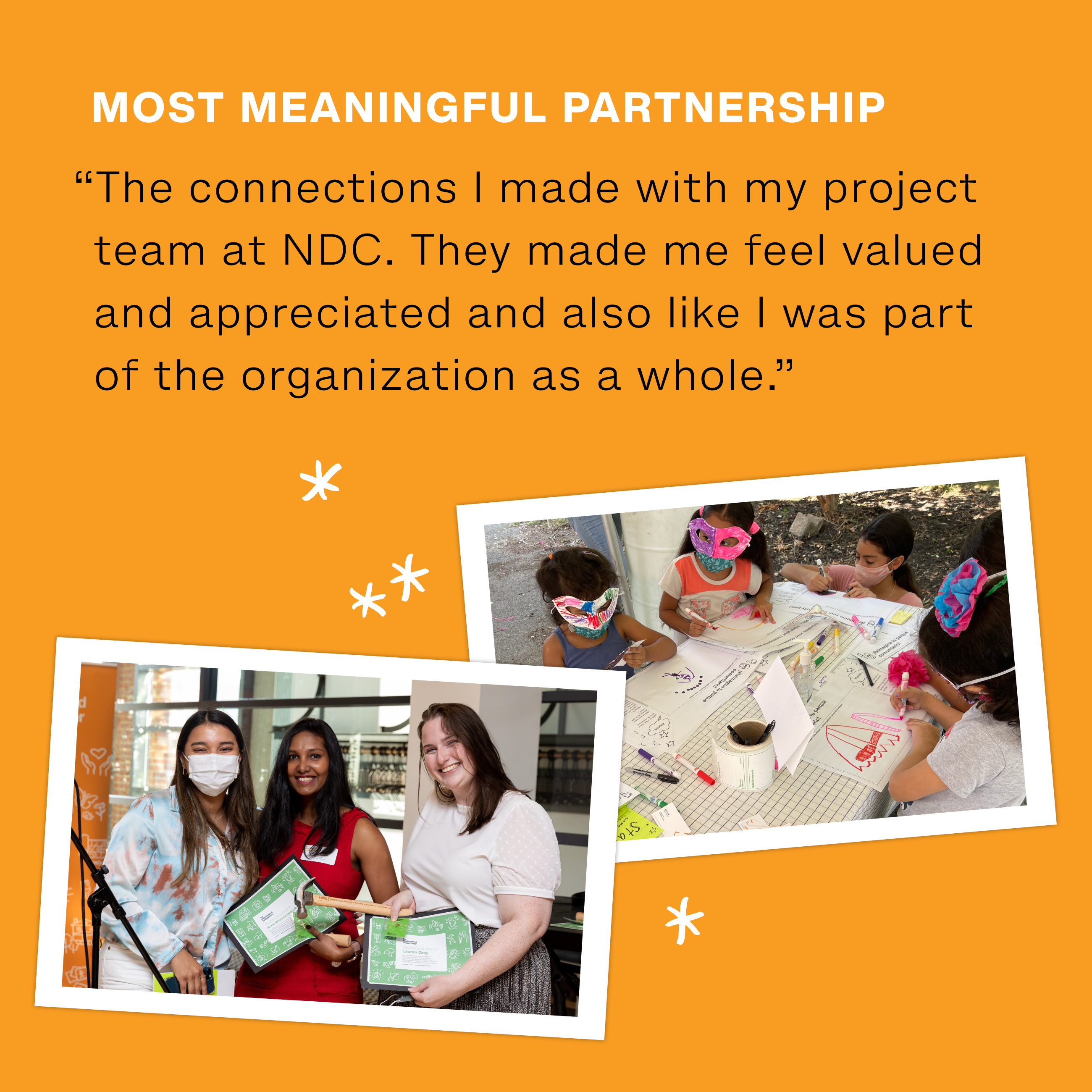 Kumi shared with us that she was most excited about the community engagement aspects related to the projects she worked on. “We had the chance to engage with a variety of stakeholders from the community ... just listening to everyone’s vision for their neighborhood was very inspiring.”