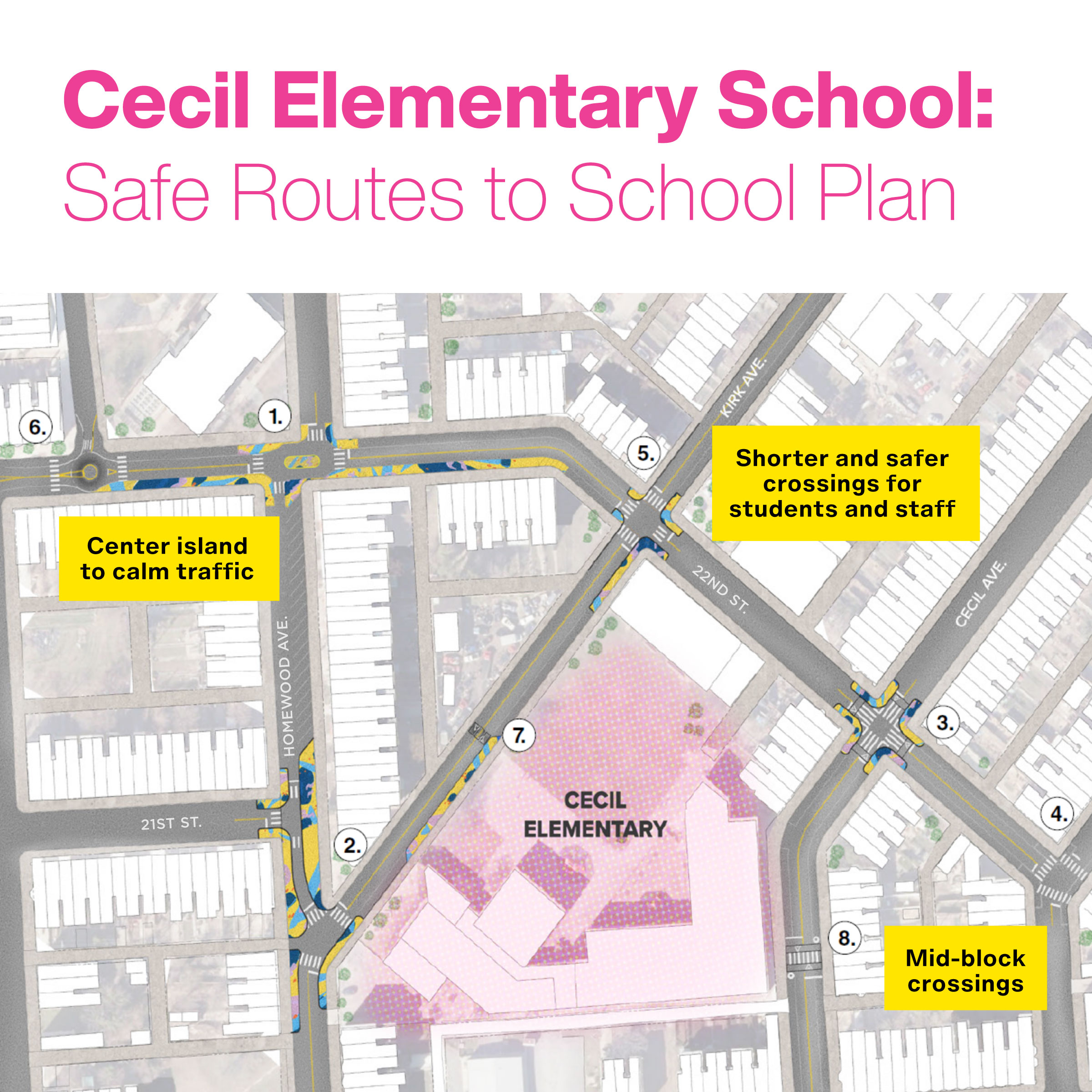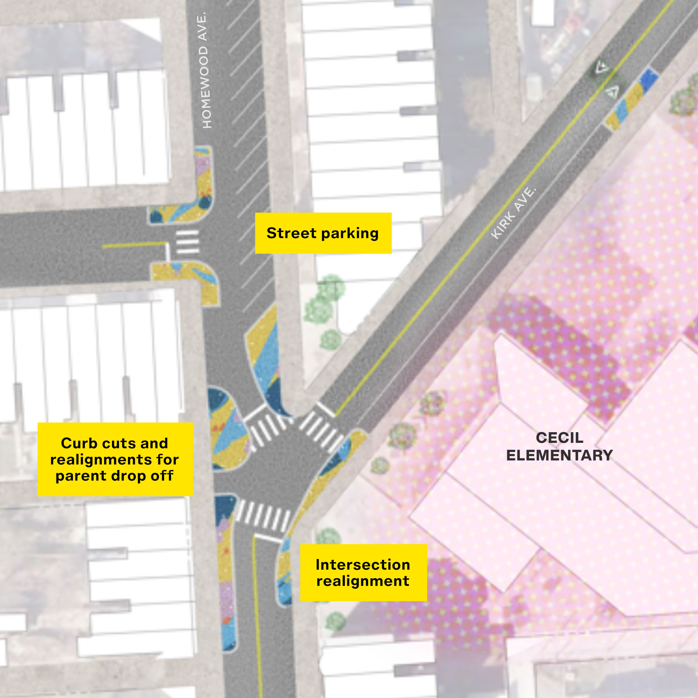 Cecil Elementary School leadership and East Baltimore Midway residents requested traffic calming around Cecil Elementary, in line with the recommendation set forth by the NDC in the East Baltimore Midway Streetscape and Greening Plan to prioritize items that will increase Cecil Elementary as a school of choice.
