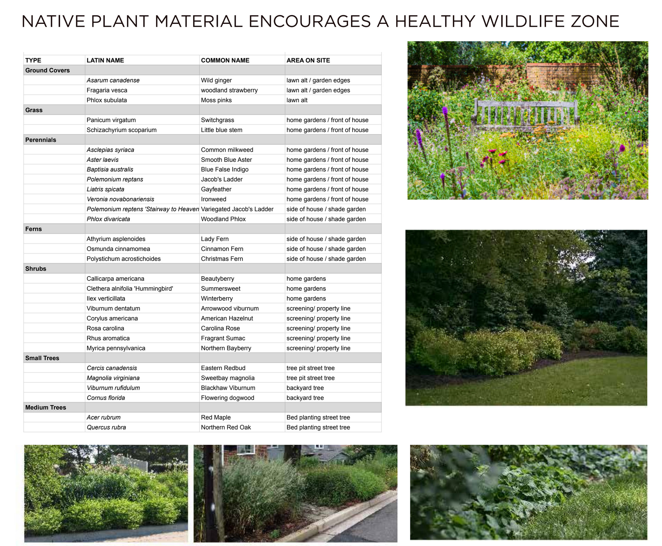 Use of Maryland native plant material to encourage a healthy wildlife zone