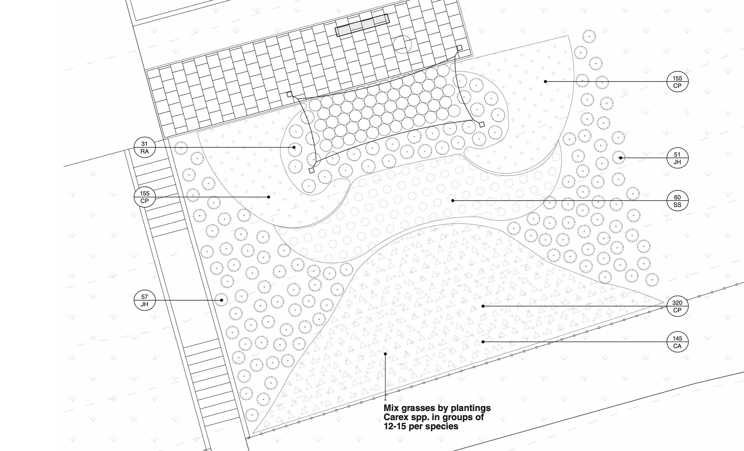 • Reduced erosion and increased biodiversity in the landscape by planting native sedges and fragrant sumac on the slope