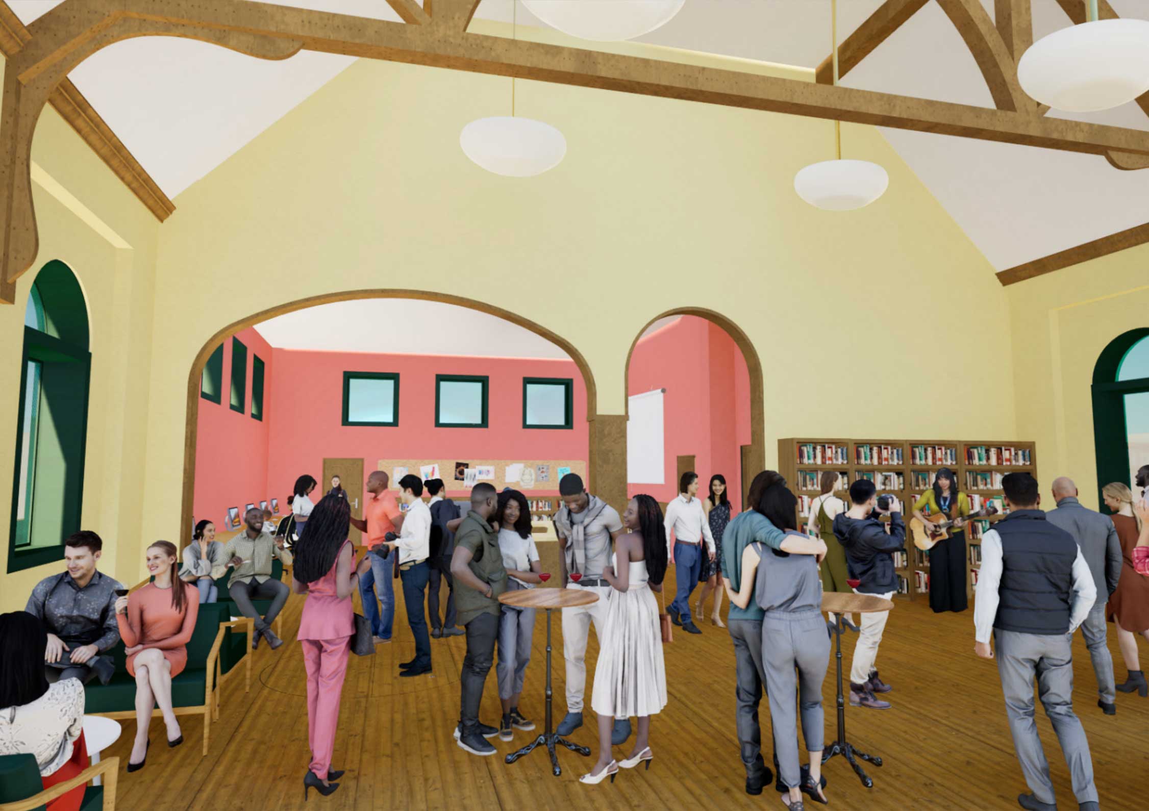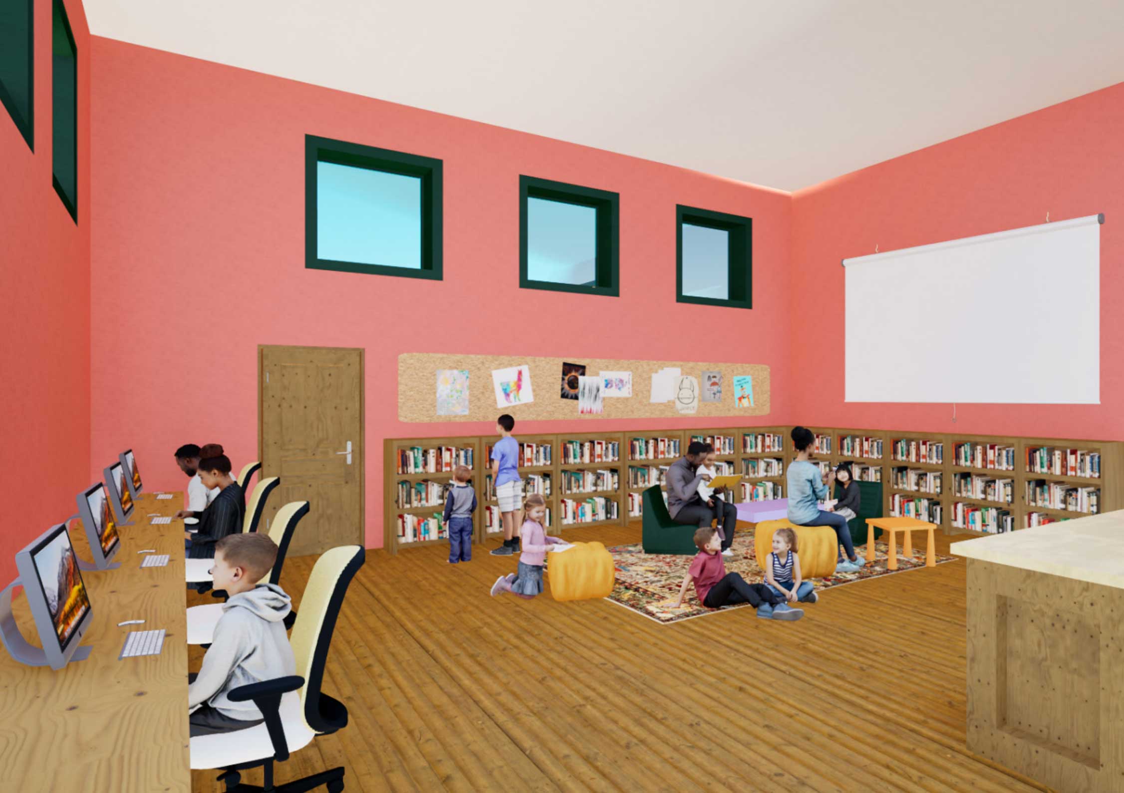 Relocation of the circulation desk and children’s corner to create a large and flexible event space on the main level