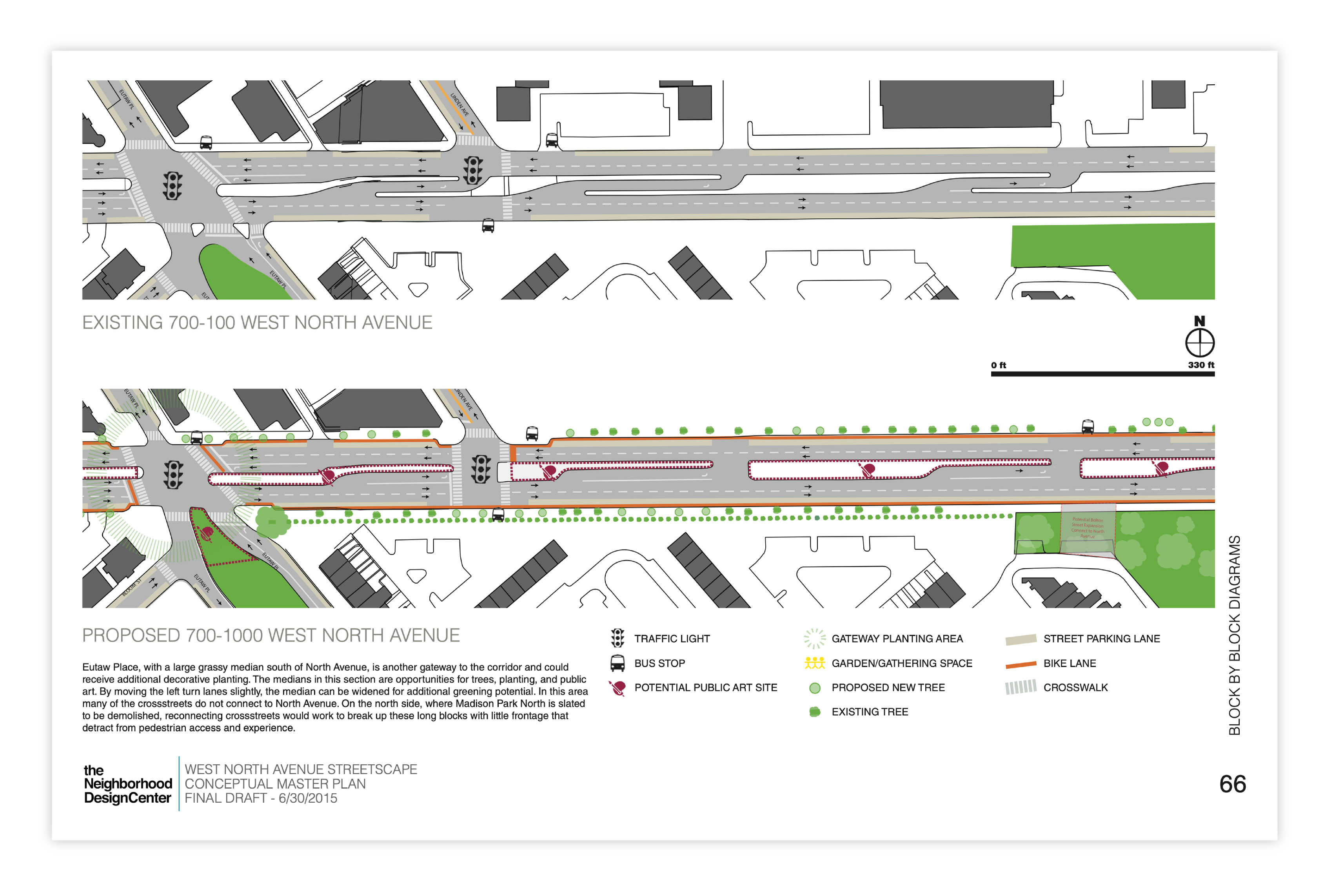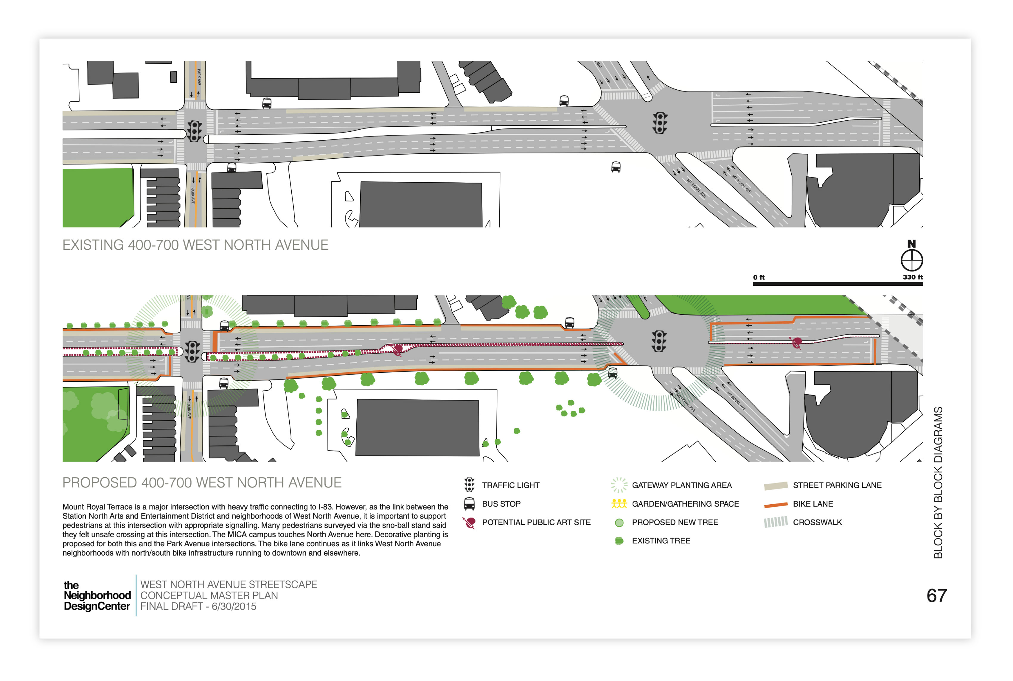 The resultant conceptual master plan addresses three miles of West North Avenue from Howard Street in the center of Baltimore to Hilton Parkway on the far west side.